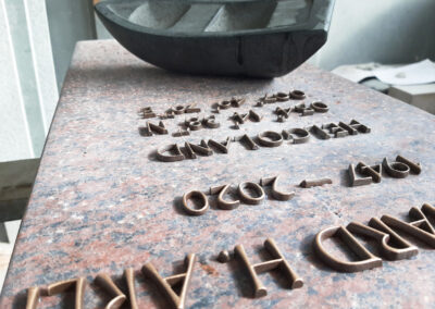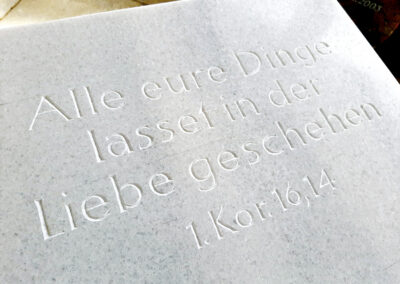 Gestein und Oberfläche sind die zwei Partner, die bedacht zusammengefügt werden wollen. Sie bestimmen die Erscheinung des Grabmales.