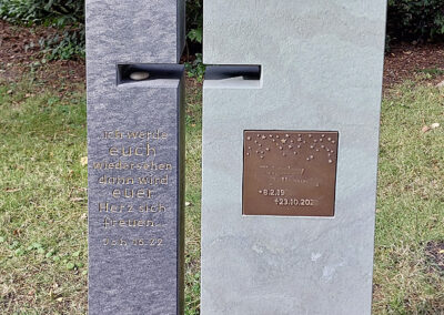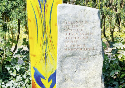 Trauerarbeit heißt Dialog von Festhalten wollen und Loslassen können. Es erfährt sich an diesem festen Ort. Das Grabmal will helfen und Trost spenden.