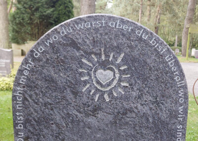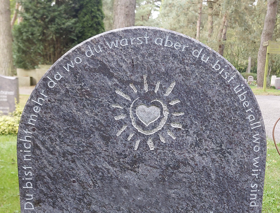 Inhalt, Form, Gesteinsart und Oberflächenwirkung sind die vier Anwendungsmöglichkeiten der Gestaltung, die ein stimmiges Grabmal entstehen lassen. Ergänzend zum Namen können Inhalte wie Symbole, Sinnsprüche oder auch ganz persönliche Erinnerungsstücke die Wertschätzung des Menschen darstellen. Die Form des Steines kann mit den genannten Inhalten korrespondieren. Sie offenbart Charakter, möchte etwas über das Lebenswerk berichten.